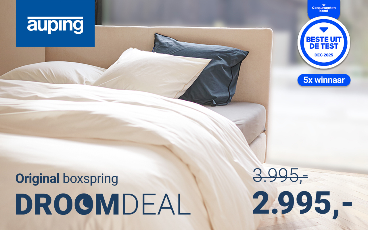een hele scherpe setprijs voor een complete Auping boxspringset van 180×200