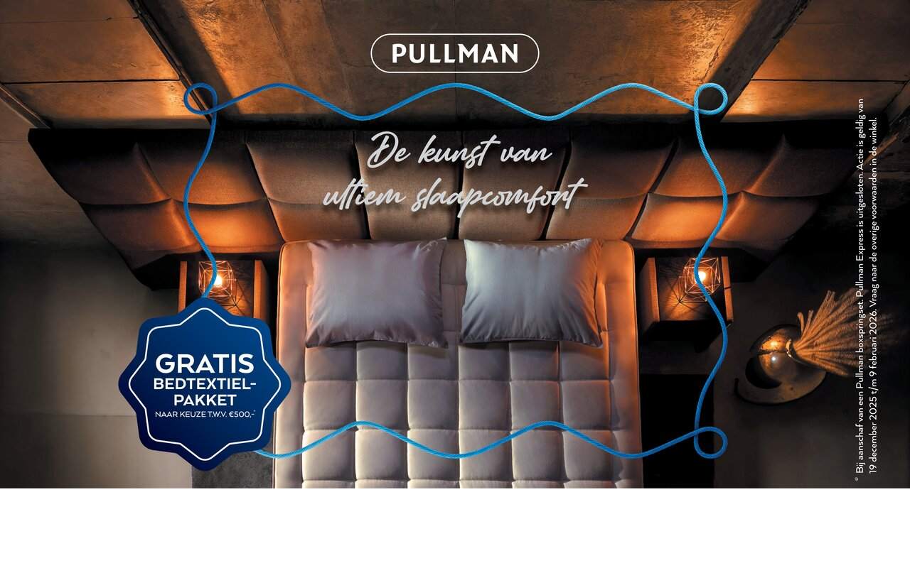 Bij aanschaf van een verstelbare 2-persoons Pullman Silverline, Goldline of Original boxspring set kun je een bedtextielpakket samenstellen naar eigen keuze t.w.v. (max.) € 500,-